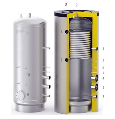 1. Штуцер с наружной резьбой G 1” (до 2000 литров), G 2’’ (от 3000 литров) –вход холодной воды
